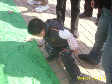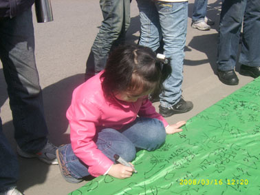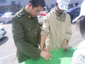3月16日,為倡議有車族參與本活動(dòng),加強(qiáng)對(duì)廢油液排放的監(jiān)督,來自奧吉娜、東北大學(xué)、沈陽大學(xué)、中國醫(yī)大的環(huán)保志愿者組成了近千人的宣傳隊(duì),在桃仙機(jī)場、北方圖書城、卓展商場、每家瑪、家樂福金牛店、麥德龍展開了宣傳。上午10時(shí),活動(dòng)現(xiàn)場設(shè)置了“支持回收車用廢棄油液-利國利民利已利后世”條幅和巨幅“迎奧運(yùn)天藍(lán)水清地綠-車用廢棄油液回收活動(dòng)之沈城十萬駕車者聯(lián)合簽名”錦旗,志愿者現(xiàn)場講解車用油液對(duì)環(huán)保的危害,倡議有車人士對(duì)隨意排放現(xiàn)象進(jìn)行監(jiān)督?;顒?dòng)得到有車族的積極響應(yīng)與大力支持,不到半天,已有近萬名應(yīng)倡者在錦旗上簽名,從中可以看出沈陽市民迎接奧運(yùn)的熱情和對(duì)和諧社會(huì)的向往,體現(xiàn)了沈陽市民普遍具有較強(qiáng)的環(huán)保意識(shí)和責(zé)任感。
