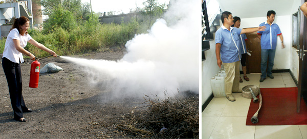 俗話說(shuō)“行軍打仗,軍馬未動(dòng),糧草先行”,說(shuō)的就是做好事先準(zhǔn)備工作的重要性。對(duì)于化工公司這樣可燃、易燃物多的場(chǎng)所而言,如何做好消防安全工作,提升火災(zāi)防范能力,及時(shí)發(fā)現(xiàn)、排除火災(zāi)隱患就顯得格外重要。2011年8月26日下午15時(shí),奧吉娜公司對(duì)全體員工進(jìn)行了一次消防安全技能專(zhuān)題演練。