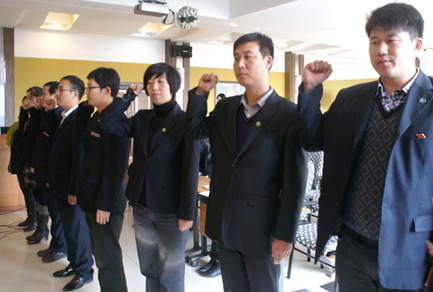 10月31日下午13:30,莊嚴(yán)肅穆的奧吉娜化工公司的會(huì)議室中,8位新黨員莊嚴(yán)的舉起右拳,宣誓入黨。