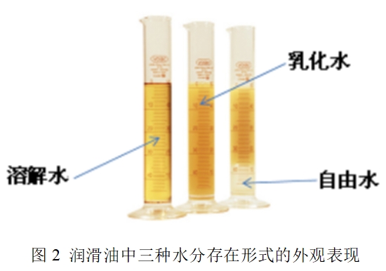 通常我們發(fā)現(xiàn)油品狀態(tài)透亮,不渾濁時(shí),水分都是以溶解水狀態(tài)存在的。當(dāng)溶解水達(dá)到飽和狀態(tài)時(shí),油品會(huì)出現(xiàn)渾濁,有時(shí)甚至呈現(xiàn)乳化狀態(tài),這時(shí)的水分稱(chēng)為乳化水。當(dāng)呈現(xiàn)乳化狀態(tài)的油中的水分繼續(xù)增加時(shí),油和水會(huì)分層,這時(shí)的水分稱(chēng)為游離水。據(jù)研究表明,游離水的危害是最大的。
