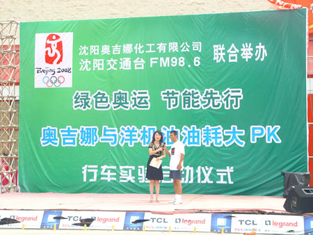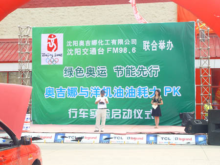 奧運(yùn)倒計(jì)時(shí)一周年之際,由沈陽(yáng)奧吉娜化工有限公司與沈陽(yáng)交通臺(tái)聯(lián)合舉辦的“綠色奧運(yùn)、節(jié)能先行,奧吉娜與洋機(jī)油萬(wàn)里油耗大PK”行車(chē)實(shí)驗(yàn)拉開(kāi)了序幕,2007的8月24日上午,舉行了啟動(dòng)儀式。